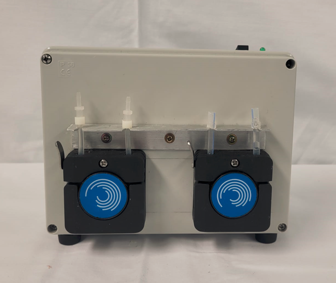 The peristaltic unit is a system made of two peristaltic pumps driven by two 42-step stepper motors, powered at 12v DC and controlled by two Easy-Driver boards.